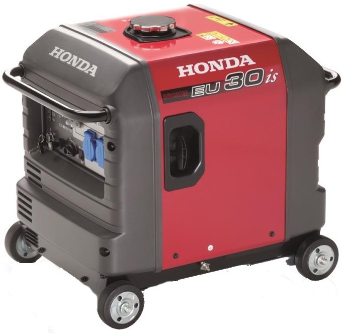 Kapotovaná odhlučněná elektrocentrála EU 30iS: model velmi tiché, jednofázové elektrocentrály s invertorem. Patentovaná technologie invertoru umožnila Hondě vyrobit kompaktní a lehký generátor malých rozměrů, ale vysokého výkonu s vyladěnou a stabilní křivkou průběhu výstupního napětí pomocí přesné elektroniky. Výkonný alternátor pohání profesionální průmyslový motor řady GX 200 s elektrickým startérem a to vše úhledně "zabaleno" do líbivého designu důkladně odhlučněné kapotáže.