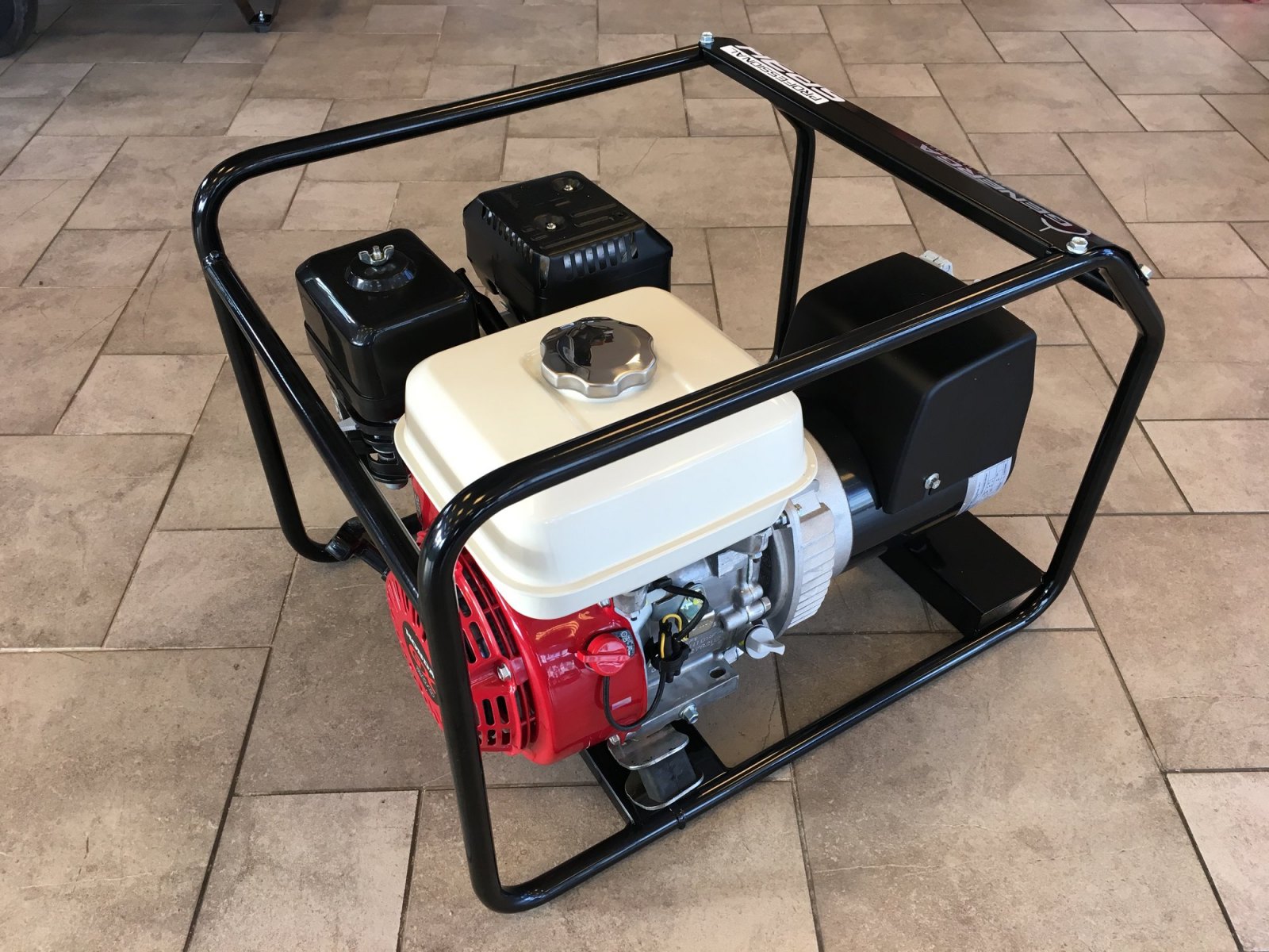 Základní model jednofázových rámových elektrocentrál s regulací výstupu kondenzátorem. Výkonný alternátor pohání profesionální motor řady GX s lehkým startem.