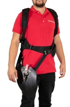 Tento dvouramenní zádový postroj lze pro optimální nastavení pohodlně nastavit na velikost každého uživatele. Mimořádně bohaté polstrování ramenních popruhů je příjemné pro každou postavu a důmyslné rozložení hmotnosti na bedra obsluhy, pohlcují velkou míru vibrací a poskytují, na trhu jedinečnou, míru komfortu tak, aby obsluha ani při dlouhodobé práci netrpěla únavou. Ochranný kryt chrání bok uživatele od přímého kontaktu s hřídelí křovinořezu a s bezpečnostním závěsem s uvolňovacím systémem.