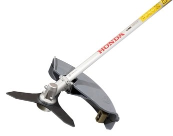 Pokud potřebujete jako pracovní nástroj použít 3 - zubý či jiný travní žací kotouč, stačí jednoduše od rozměrného ochranného krytu oddělit pouze spodní ochranný proužek se zařezávacím břitem pro žací strunu. Není tak nutné pořizovat pro každý žací nástroj zvláštní kryt a dle potřeby kryty měnit. Při použití strunové hlavy, je ochranný kryt opatřen ochranným pruhem s ostrým zařezávacím břitem. Ten slouží k automatickému zakrácení žací struny na předepsanou pracovní délku při případném prodlužování opotřebované struny (viz. Strunová hlava Tap & Go). Jiní výrobci mnohdy používají plastový břit, který brzy ztratí svoji účinnost. Honda používá břit ocelový, který lze v případě nutnosti nabrousit. Byť se to zdá zbytečné, ale perfektní funkce tohoto břitu je z hlediska funkčnosti a bezpečnosti zcela zásadní. Profesionálové jiné ochranné kryty než s ocelovým břitem nemohou použít.