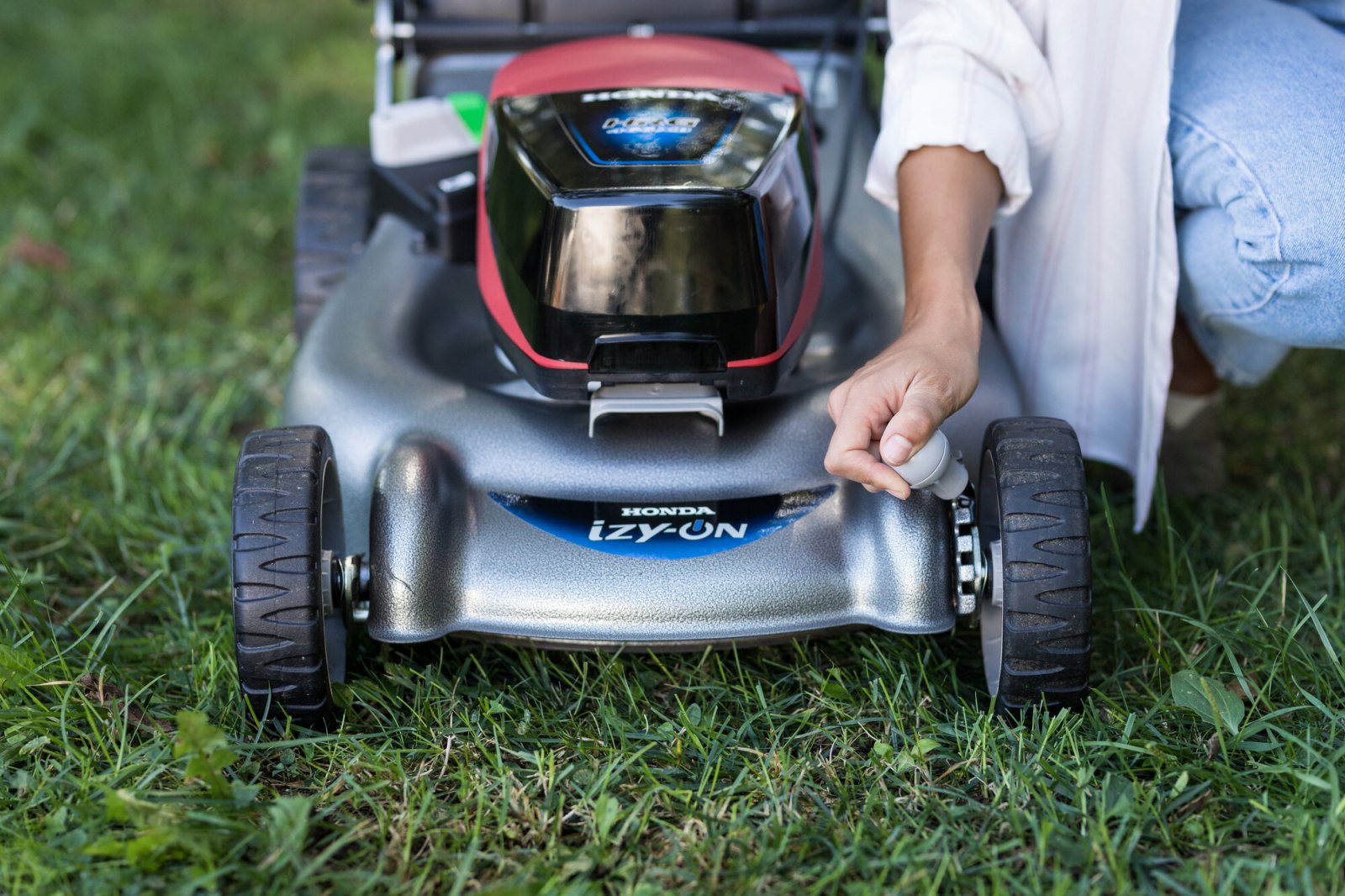 Díky svému vybavení, výkonu a kompaktním rozměrům je model HRG466 nejprodávanější sekačkou Honda na trhu. Nyní přichází i ve verzi AKU. Silný elektromotor a originální systém Honda Optiflow zvládne i přerostlý nebo dokonce mokrý travní porost. Ano. Stupeň krytí elektromotoru proti vodě je totiž IP54 a dovoluje sekačku provozovat i za nepříznivých povětrnostních podmínek. Ovládací prvky jsou ergonomicky a přehledně uspořádány a ještě umocňují nebývale snadnou manipulaci a obsluhu sekačky. O pohon se zde stará profesionální, 8-pólový bezuhlíkový elektromotor 36V, uložený v hliníkovém plášti a průmyslových kuličkových ložiskách. Disponuje výkonem 1,8 kW a svým výkonem a hlavně kroutícím momentem  6,0 N.m patří elektromotor k nejsilnějším akumulátorovým pohonům na trhu v dané kategorii a lehce překonává i konkurenční elektromotory. Díky bohatému chladícímu žebrování je motor teplotně vyvážený a nepotřebuje dodatečné chlazení pomocí ventilátoru, proto je mimořádně tichý a účinný. Vícepólová, konstrukce rotoru zaručuje konstantní a stabilní výkon motoru jak v odlehčeném stavu, tak i pod zátěží. Znamená to, že efektivita a kvalita sekání a sběru je naprosto vyrovnaná  bez ohledu na hustotu a výšku travního porostu. „Palivovou nádrží“ pro tento motor jsou akumulátory 36 V ve třech různých kapacitách; 3 Ah, 6 Ah nebo 9 Ah, kterou využijí hlavně uživatelé z řad profesionálů. Konstrukce Li-Ion akumulátorů zaručuje dlouhou výdrž a životnost a potenciál napětí 36 V je naprosto optimální pro dosažení maximálního výkonu a schopnosti přenesení maximálního napájecího proudu na elektromotor. Na plně nabitou baterii 6 Ah sekačka poseká plochu o rozloze až 500 m2. Nabíječka Honda nabije baterii 4 Ah za 35 minut, 6 Ah za 55 minut a 9 Ah za 77 minut. Výška střihu trávníku se pohodlně nastavuje rozměrnou pákou samostatně na každé nápravě. Sekačku lze používat ve třech režimech použití; sekání se sběrem, sekání bez sběru a mulčování.  Patentovaný integrovaný systém Honda CLIP DIRECTOR™ umožňuje obsluze jedním pohybem ovladače během vteřiny změnit sekačku trávy na mulčovač a naopak. Tato sekačka je opatřena veškerými bezpečnostními prvky včetně bezpečnostní brzdy rotace sekacího nože, která zajistí okamžité zastavení rotace nože při vypnutí motoru. Robustní a pevná konstrukce podvozku spolehlivě snese působení ohromného výkonu motoru na rotující sekací nůž a navíc v maximální možné míře pohlcuje vibrace, které se dále nepřenáší na ovládací madlo sekačky. Práce je potom příjemnější. Tato Honda je určena pro uživatele, kteří kladou vysoké nároky na tichý provoz bez emisí, sekací výkon, snadnou obsluhu a svou velikostí je vhodná jak na rovné, tak i svažité travnaté plochy o rozloze cca do 500 m2. Při použití baterie 9 Ah je schopna sekačka zdolat travnatou plochu o rozloze až 700 m2. Flexibilita výrobků spočívá ve vzájemné záměnnosti a možnosti použití akumulátoru ze sekačky i na ostatní AKU výrobky z nabídky Honda. Chytrá rychlonabíječka akumulátor spolehlivě, šetrně a hlavně rychle nabije a můžeme pokračovat v práci. Taková je AKU sekačka Honda IZY. Bezpečná, výkonná, spolehlivá, tichá, úsporná a hodně snadná na obsluhu a ovládání