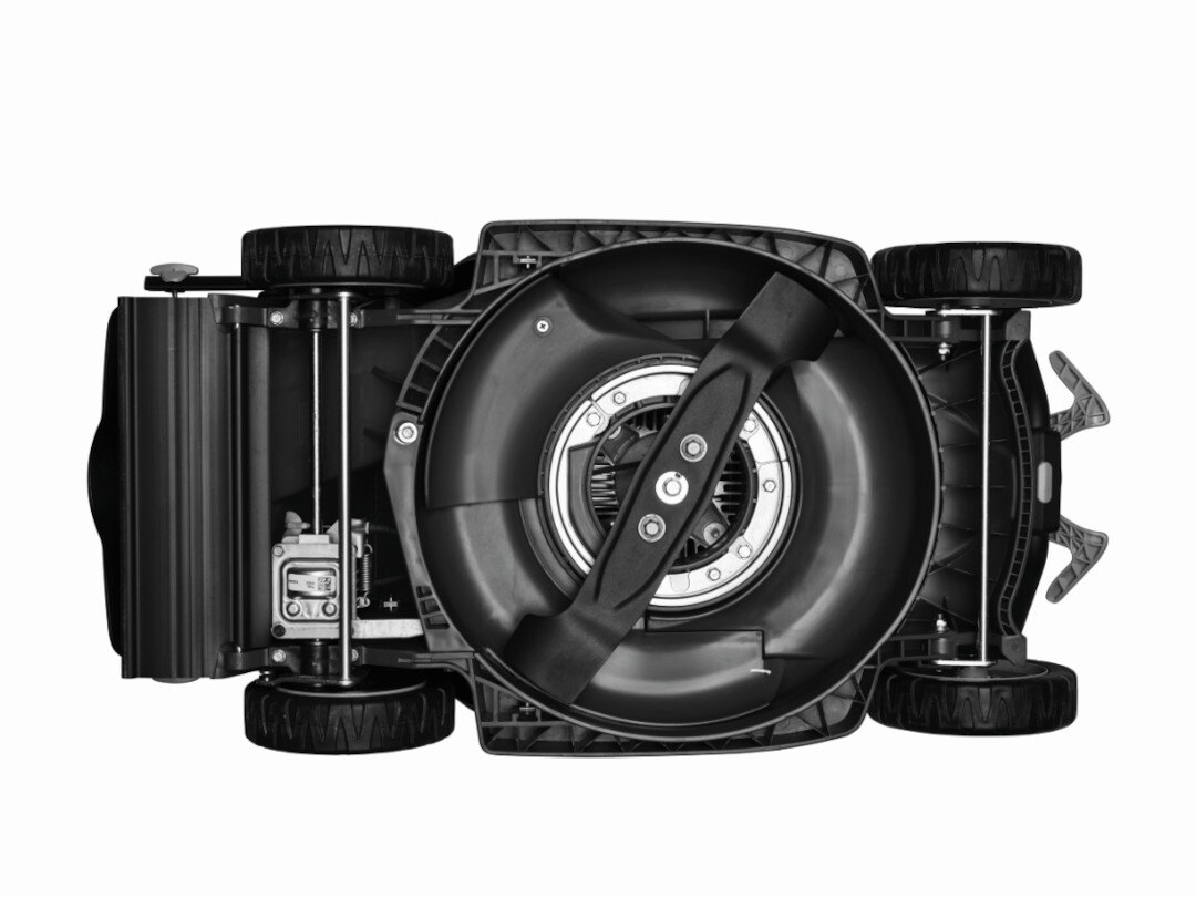 Podvozek je vylisován jako jediný, kompaktní díl z vysoce odolného a pružného materiálu, který dokonale pohlcuje jak hlučnost, tak i vibrace, přenášené na ovládací rujkojeť. Tyto sekačky poháněné motorem s velmi snadným startováním patří k nejkomfortnějším sekačkám na trhu.