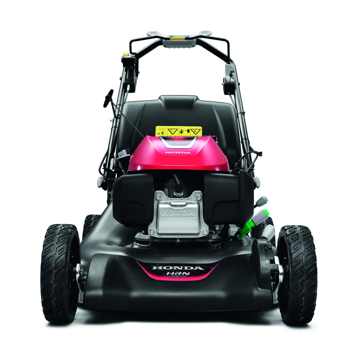 Tato benzínová sekačka je základním pokračováním nabídky řady HRG do většího záběru sekání, vyššího uživatelského komfortu a je nástupcem velmi oblíbeného modelu HRG536, který si za dobu své mnohaleté existence získal tisíce spokojených uživatelů. Díky silnému motoru a originálnímu systému Honda Optiflow je schopna nová HRN536 zvládnout i přerostlý nebo dokonce mokrý travní porost. Nový podvozek se dočkal vylepšeného tvarování žací komory a nápravového nastavování výšky sekání. Ovládací prvky jsou přehledně uspořádány poskytují obsluze velmi snadnou manipulaci. Vlastní pohon s možností plynulé změny rychlosti jízdy SMART Drive® se dočkal modernizace, zvýšení komfortu ovládání a dokonale se přizpůsobí pohybovým schopnostem každého. Snadné manipulaci přispívají nové nápravy a pojezdová převodovka, která působí menším odporem při jízdě bez použití pojezdu jak vpřed, tak i vzad. Výrazně se tak snižuje námaha při práci. Motor s automatickým sytičem je opatřen zařízením, které umožňuje velmi lehký start, který bez problémů zvládnou i ženy či fyzicky slabší uživatelé. Výkonem a hlavně kroutícím momentem je nový motor GCV 170 nejsilnějším motorem na trhu v dané kategorii a lehce překonává i konkurenční motory větších kubatur. Neméně důležitá je také odolnost motoru vůči automobilovým benzínům s obsahem 10% ethanolu (E10). Motor je navíc provozně čistější (plní normu EURO5), úspornější, snadnější na údržbu a odolnější vůči benzínům s obsahem biolihu. Sekačku lze používat ve třech režimech použití; sekání se sběrem, sekání bez sběru a mulčování. Patentovaný integrovaný systém Honda CLIP DIRECTOR™ je zde od základu přepracován. Ovládání mulčovací klapky se přesunulo z horní části podvozku přímo nad žací komoru po levé straně motoru. Umožňuje obsluze jedním pohybem ovladače během vteřiny změnit sekačku trávy na mulčovač nebo drtič spadaného listí a naopak. Samozřejmostí je u této sekačky použití dvou samostatných nožů v podobě sekacího nože s lopatkami výhozu trávy do sběrného koše a mulčovacího nože, který nadrtí trávu na menší částečky. Možnost vypnutí rotace nože bez vypnutí motoru, Roto-stop® (disková třecí spojka nožů), značně snižuje úsilí obsluhy na opětovné startování motoru např. po vyprázdnění travního koše. Samozřejmě i přejíždění se sekačkou z místa na místo je bezpečnější v porovnání s jízdou s rotujícím nožem. Robustní a pevná konstrukce podvozku spolehlivě snese působení ohromného výkonu motoru na rotující sekací nože a navíc v maximální možné míře pohlcuje vibrace, které se dále nepřenáší na ovládací madlo sekačky. Práce je potom příjemnější. Tato Honda je určena pro uživatele, kteří potřebují sekat trávu jak na rovné, tak i částečně svažité a členité travnaté ploše o velikosti cca do 1500 m2 a přitom si užívat komfortu.
