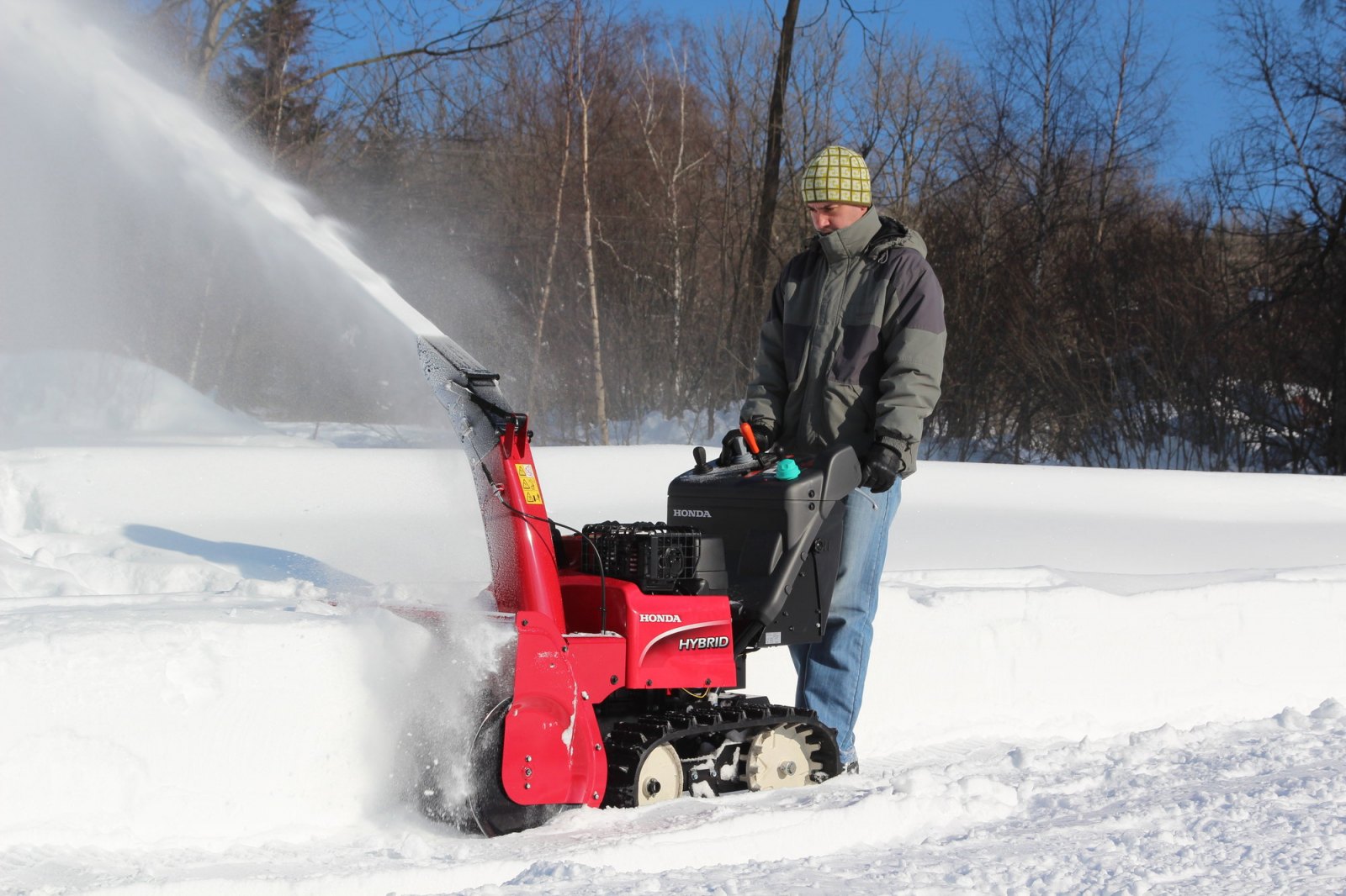 Hybridní pohon spočívá v kombinaci spalovacího motoru s elektrickým pojezdem. Motor Honda iGX s přehledem plní poměrně přísnou emisní normu EURO 5, disponuje elektronickou řídící jednotkou s automatickou regulací otáček v závislosti na zvoleném pracovním režimu. Tím, že jeho hlavní zátěží je přímý náhon 80 cm širokého frézovacího mechanizmu, má ohromnou rezervu výkonu na to, aby hravě zvládl zpracovat a odhodit až 83 tun sněhu za hodinu do vzdálenosti až 19 m. Výškově i stranově nastavitelný otevřený frézovací mechanizmus s bočními disky ovládaný křížovým ovladačem na ovládacím panelu se přizpůsobí jakýmkoliv nerovnostem povrchu a zakrojí se i do těžkého a zmrzlého sněhu. Do sněhové závěje frézu posouvají pojezdové pásy, které mají vynikající trakční schopnost a výbornou prostupnost terénem, dobře drží stopu při úklidu sněhu ve svahu, nepoškozují povrch a stroj je pořád dostatečně obratný pro to, aby se mohl pohybovat i na méně přístupných a menších místech nebo v blízkosti zaparkovaných automobilů. Rychlost pojezdu jak vpřed, tak i vzad se ovládá pákou na ovládacím panelu naprosto plynule bez výkyvů rychlosti jízdy.